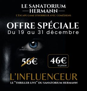 Le « Thriller Live » du Sanatorium Hermann, une enquête immersive grandeur nature mêlant tension psychologique et immersion totale, idéale pour celles et ceux qui cherchent quoi faire à Nantes. Vous enquêterez au cœur du village du Bignon sur les traces d’un serial killer, fan de cinéma et de réseaux sociaux, l’Influenceur! Arriverez-vous à retrouver les victimes du tueur et à les délivrer ? Regardez derrière vous. Vous êtes sur son terrain de chasse et il est impitoyable.